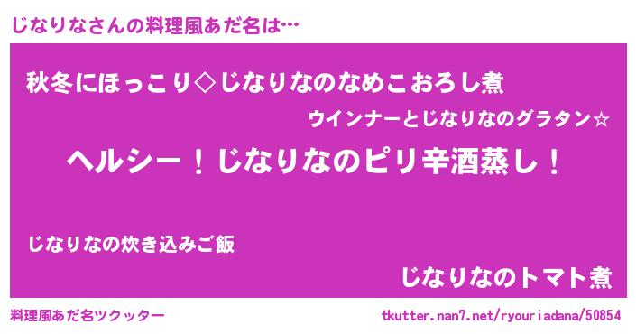| 男性向けラノベタイトル風あだ名 | 『Re:じなりなから始める異世界生活』 |