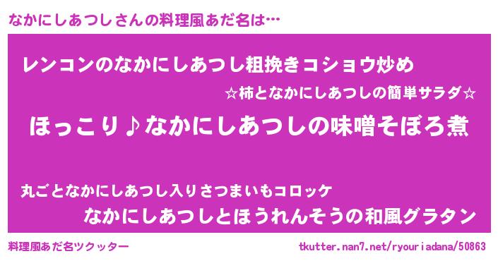 | 女子向けラノベタイトル風あだ名 | 『(仮)なかにしあつしのやんごとなき事情』 |