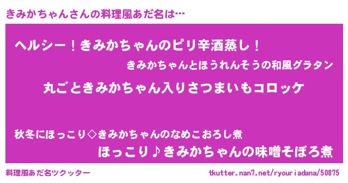 男性向けラノベタイトル風あだ名 | 『この素晴らしい世界にきみかちゃんを!』 |