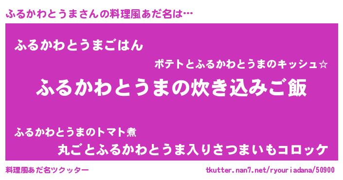 | 男性向けラノベタイトル風あだ名 | 『冴えないふるかわとうまの育てかた』 |