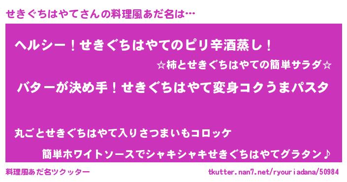 | 意味不明あだ名 | 『眠気覚ましガムせきぐちはやて味』 |