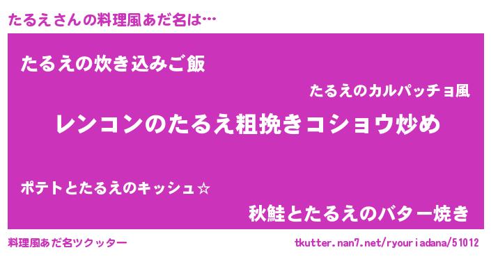 | 意味不明あだ名 | 『自称たるえ』『永久保存たるえ』 |