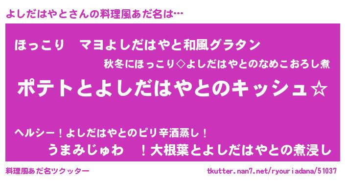 | 男性向けラノベタイトル風あだ名 | 『よしだはやとの嫁は女の子じゃないと思った?』 |