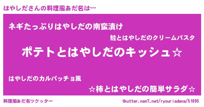 | 女子向けラノベタイトル風あだ名 | 『はやしだの卵を拾いまして』 |