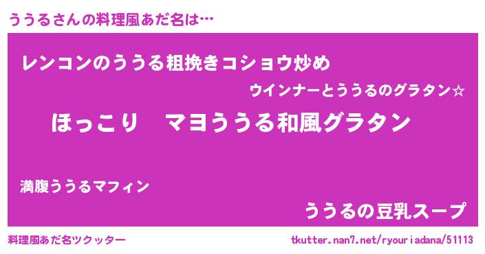 | 意味不明あだ名 | 『住所不定無職ううる(1歳)』『自称ううる』 |