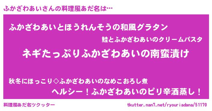 | 恥ずかしいあだ名 | 『プリティーふかざわあい』『ふかっちょ』 |