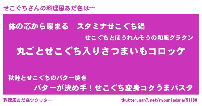 | 女子向けラノベタイトル風あだ名 | 『乙女ゲームの破滅フラグしかない悪役せこぐちに転生してしまった…』 |