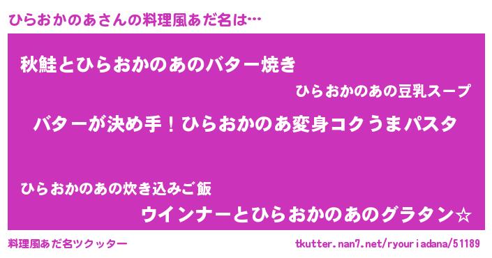 | ヘコむあだ名 | 『ひらおかのあ(遠い目)』『なまこ酢』 |