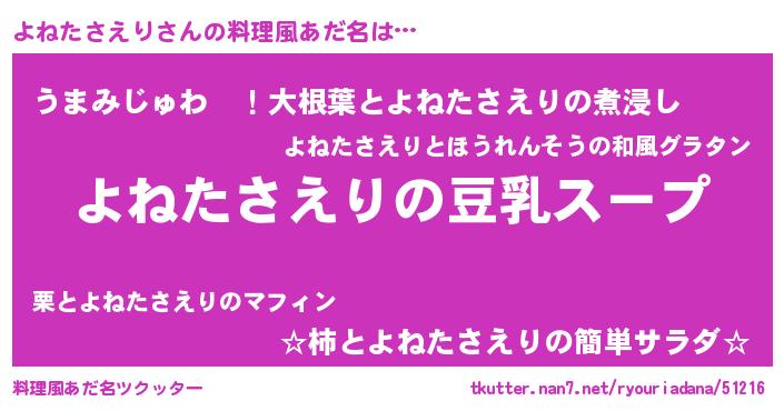 | 男性向けラノベタイトル風あだ名 | 『ダンジョンによねたさえりを求めるのは間違っているだろうか』 |