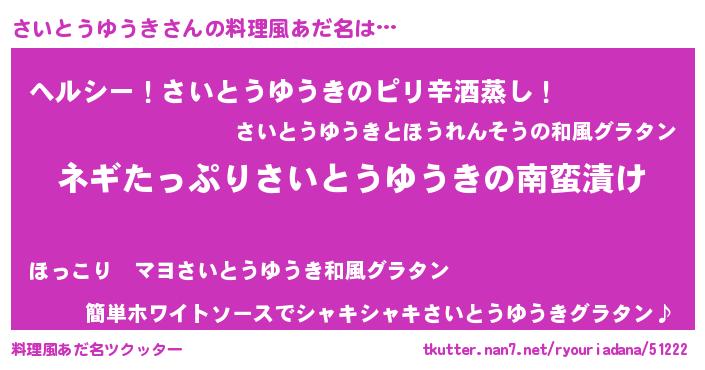 | 胡散臭い通販商品みたいなあだ名 | 『億万長者になれるブレスレット…その名も「さいとうゆうき」』 |