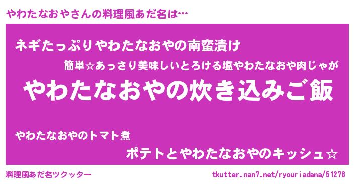 | 胡散臭い通販商品みたいなあだ名 | 『億万長者になれるブレスレット…その名も「やわたなおや」』 |
