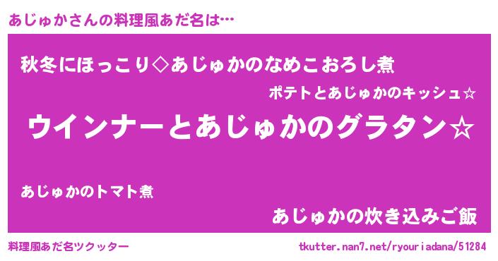 | 意味不明あだ名 | 『あじゅかフォーエバー』『自称あじゅか』 |