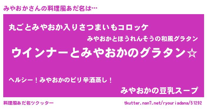 | ヒーロー風カッコイイあだ名 | 『ウルトラみやおかマン』『仮面ミヤダー』 |