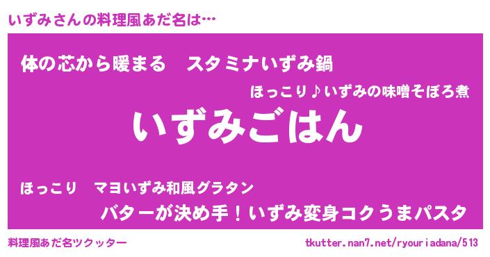 | 男性向けラノベタイトル風あだ名 | 『イズミスレイヤー』『いずみの憂鬱』 |