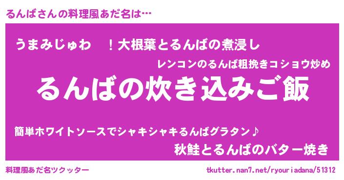 | ヘコむあだ名 | 『なまこ酢』『るんば(爆)』 |