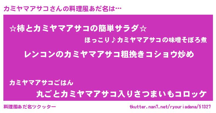 | 意味不明あだ名 | 『自称カミヤマアサコ』 |