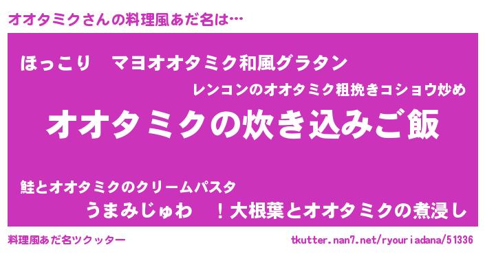 | 男性向けラノベタイトル風あだ名 | 『うちのオオタミクが世界を掌握している!』 |