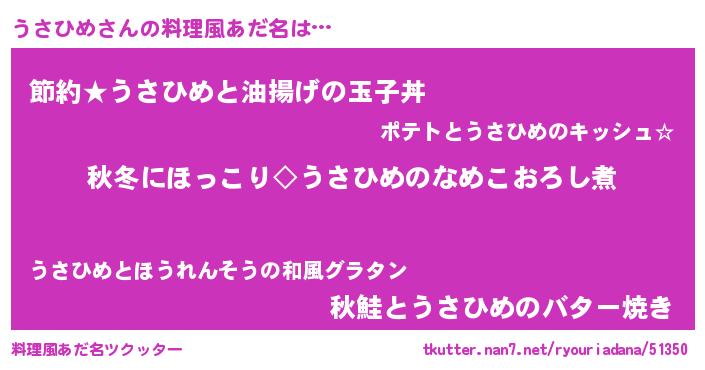 | ポケモン風あだ名 | 『ウサゴンZ』『ウサチュウ』 |