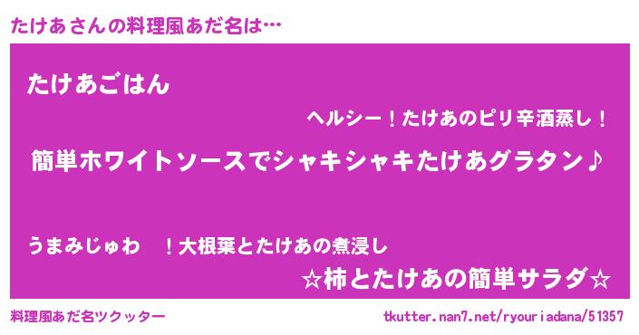 | 意味不明あだ名 | 『とにかく怪しいたけあ』『自称たけあ』 |