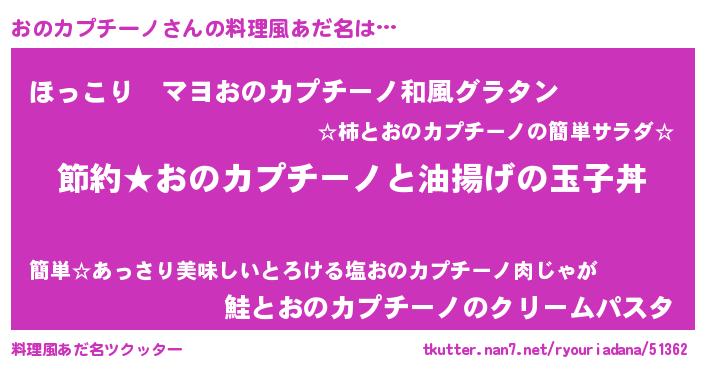 | 男性向けラノベタイトル風あだ名 | 『オノカプチーノアートオンライン』 |