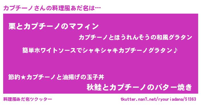 | 男性向けラノベタイトル風あだ名 | 『カプチーノの嫁は女の子じゃないと思った?』 |