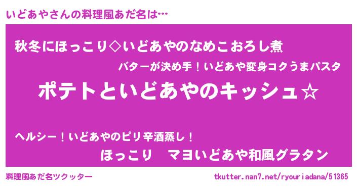 | 男性向けラノベタイトル風あだ名 | 『いどあやの嫁は女の子じゃないと思った?』 |