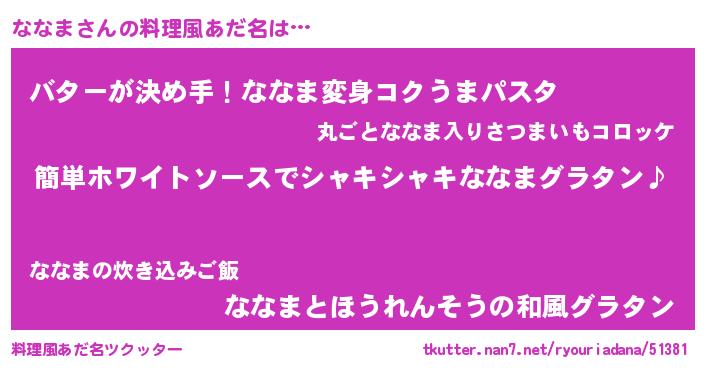 | 女子向けラノベタイトル風あだ名 | 『ななま様がみてる』『ななま恋絵巻』 |