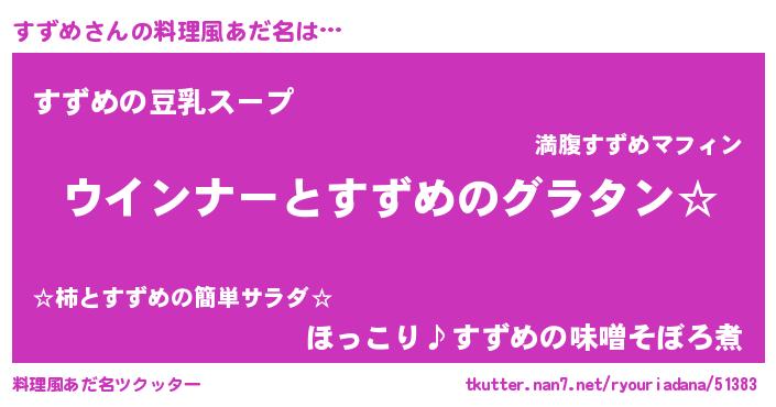 | ヒーロー風カッコイイあだ名 | 『ウルトラすずめマン』『黄金騎士スズ』 |