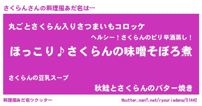 | ヘコむあだ名 | 『さくっふぃ~』『さくらん(爆)』 |