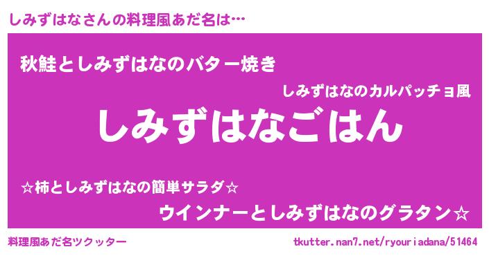 | ヒーロー風カッコイイあだ名 | 『ネオシミズハナ』『仮面シミダー』 |
