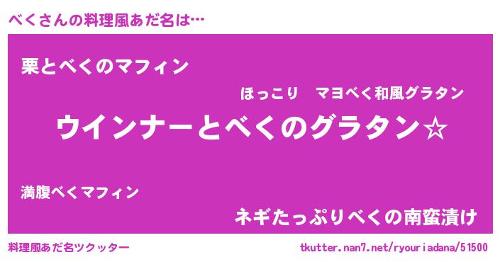 | ヘコむあだ名 | 『なまこ酢』『べくにゅー』 |