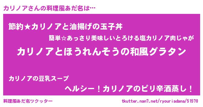 | ヘコむあだ名 | 『カリふぇ~』『カリノア(笑)』 |