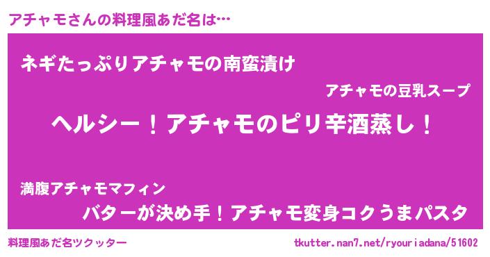 | 女子向けラノベタイトル風あだ名 | 『闇のアチャモ』『アチャモ恋絵巻』 |