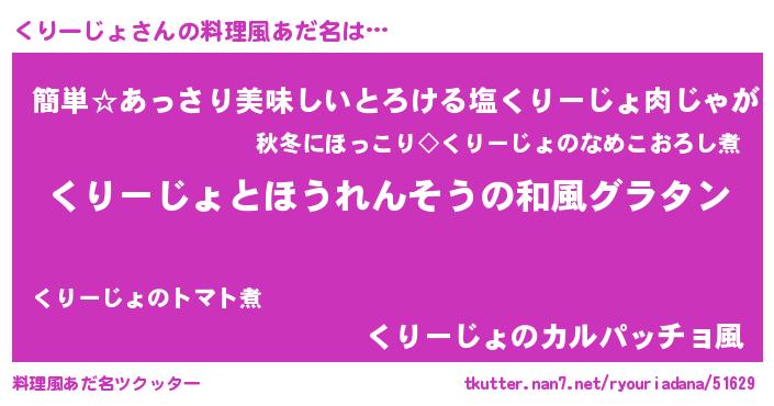 | ヘコむあだ名 | 『くりーじょ(笑)』『酢こんぶ』 |