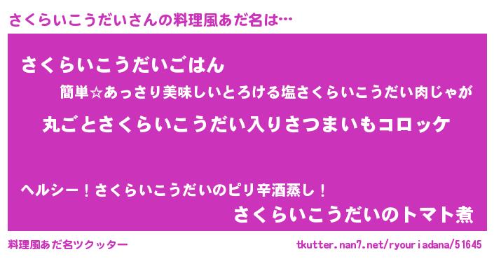 | 男性向けラノベタイトル風あだ名 | 『この素晴らしい世界にさくらいこうだいを!』 |