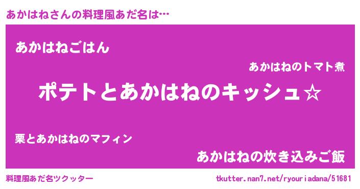 | 欧米人風あだ名 | 『ウサインあかはね』『ダニエルあかはね』 |