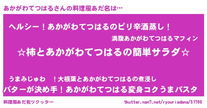 | ヘコむあだ名 | 『あかがわてつはる(笑)』『なまこ酢』 |