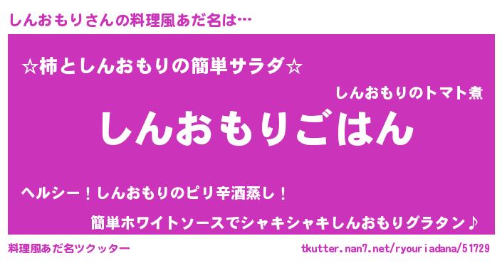 | 男性向けラノベタイトル風あだ名 | 『シンオモリスレイヤー』 |