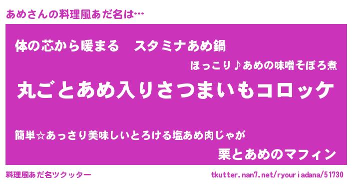 | ポケモン風あだ名 | 『アーメイ』『アメダネ』『アメゴンZ』 |