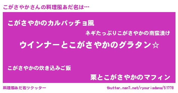 | 欧米人風あだ名 | 『こがさやかクリステル』 |