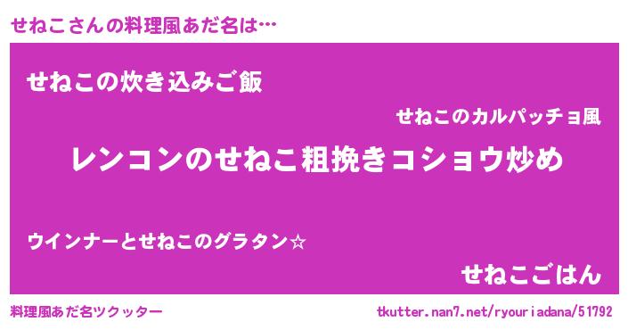 | 女子向けラノベタイトル風あだ名 | 『せねこなんてお断りですっ。』 |