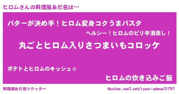 | ヘコむあだ名 | 『ヒロっ子』『ヒロム(爆)』『つくし』 |