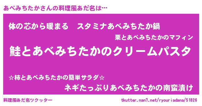 | 男性向けラノベタイトル風あだ名 | 『ノーゲーム・ノーアベミチタカ』 |