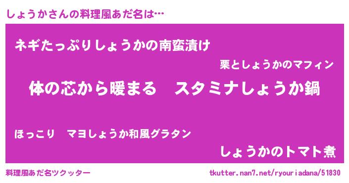 | 女子向けラノベタイトル風あだ名 | 『しょうかの雑貨屋さん』 |