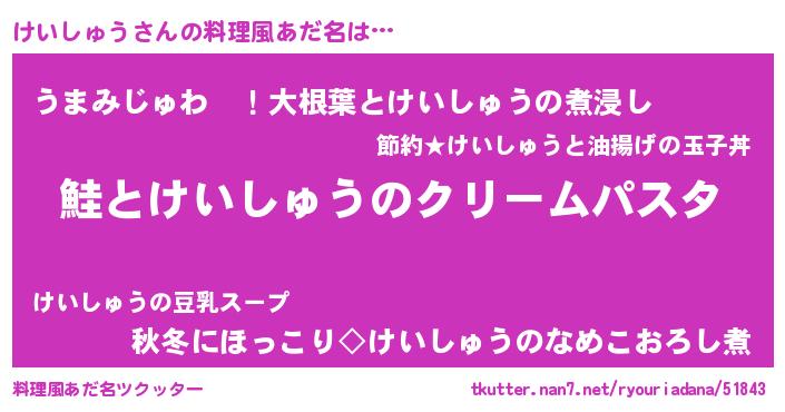 | ヒーロー風カッコイイあだ名 | 『天空の使者けいしゅう』『魔戒騎士ケイ』 |