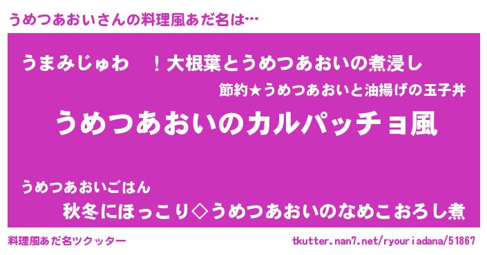 | ヘコむあだ名 | 『つくし』『うめにゅー』『うめっぺ』 |