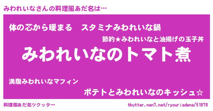 | 女子向けラノベタイトル風あだ名 | 『みわれいな夫妻のなれそめ』 |