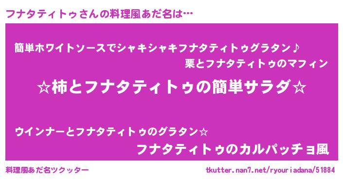 | 男性向けラノベタイトル風あだ名 | 『緋弾のフナタティトゥ』 |