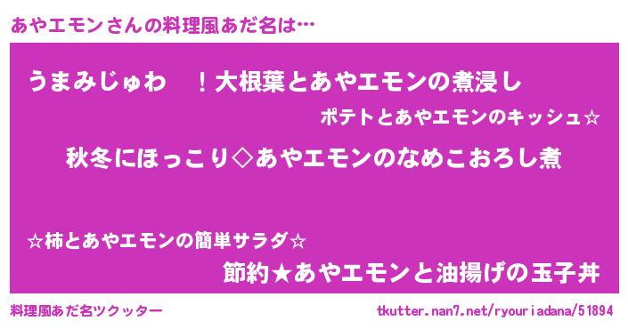 | ファンタジー風あだ名 | 『エターナルアヤエモンー』『アヤフェル』 |
