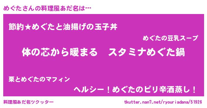 | ヘコむあだ名 | 『牛乳』『めぐにゅー』『めぐを』 |